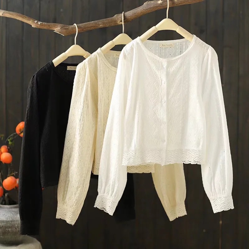 7219重工手刺繍レース飾りシャツ女性2025春秋新作気質上着シャツ