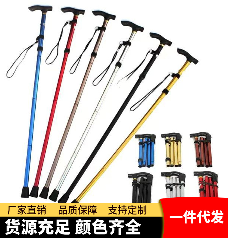 アルミ合金登山杖5節伸縮折り畳み登山杖滑り止め杖老人補強調節可能杖