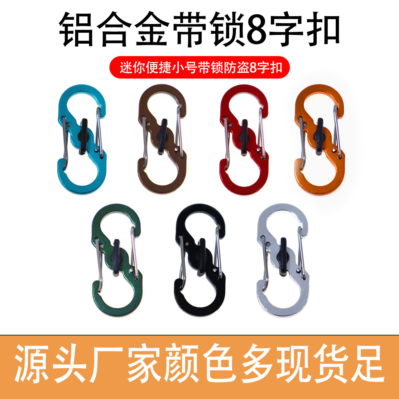ミニロック可能な 8 文字バックル S 字型アルミ合金カラビナ小さな荷物ジッパー盗難防止 8 文字バックル盗難防止デザイン