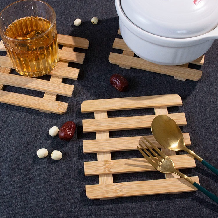 竹製断熱マットフェンス式テーブルマット土鍋ベーススタンド竹家庭用テーブルマット箔押しカップ食器皿マット