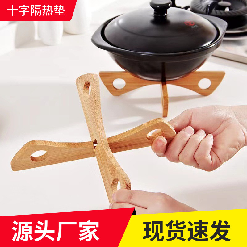 家庭用の竹の鍋の棚の十字の鍋の台座の支柱の断熱の鍋の皿のパッドのポタポタの食器棚の長い竹の鍋の底棚