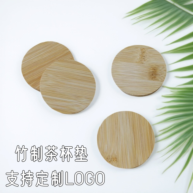 ティーコースター竹ラウンドウォーターコースターデスクトップ断熱ティーマット竹木製火傷防止ベースクリエイティブカップホルダーロゴ