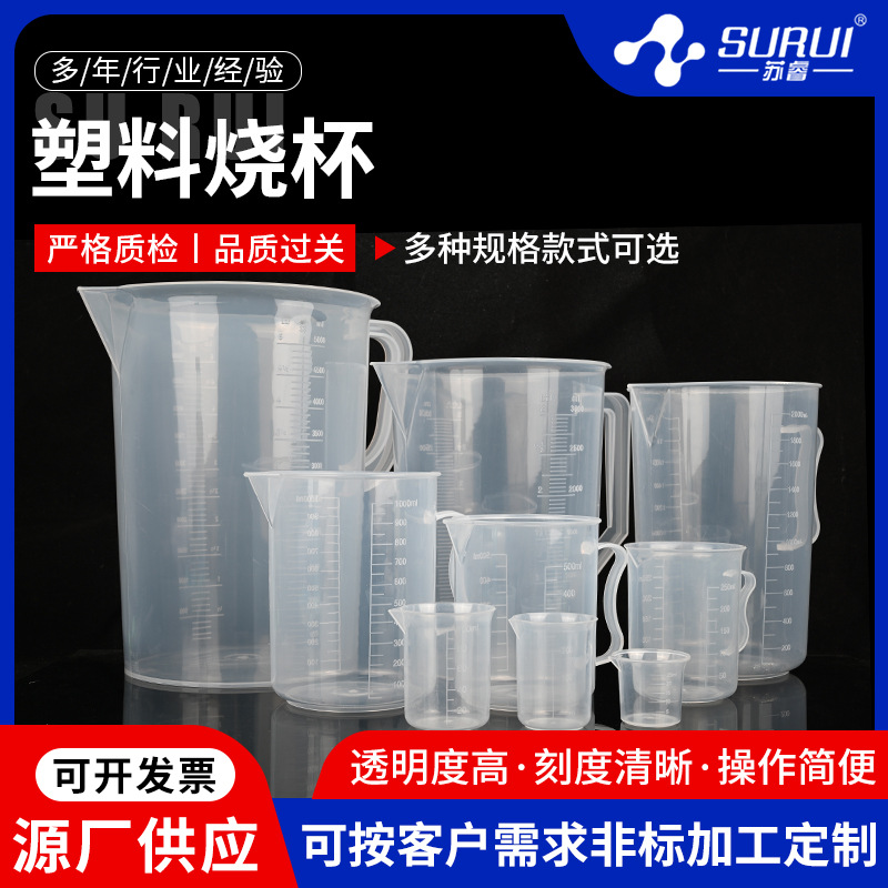 プラスチックスケール付きビーカーメーカー卸売り実験室消耗品50ml 100ml 500ml 1000mlプラスチックビーカー