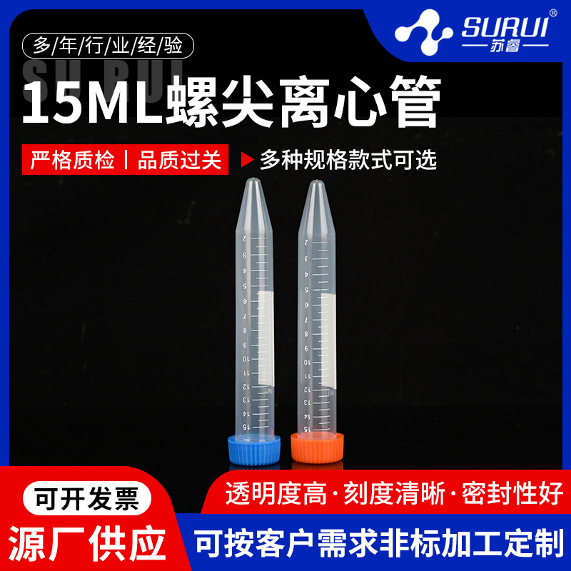 実験室消耗品使い捨てプラスチック遠心管100本/バッグ40包/箱15mlねじ先遠心管