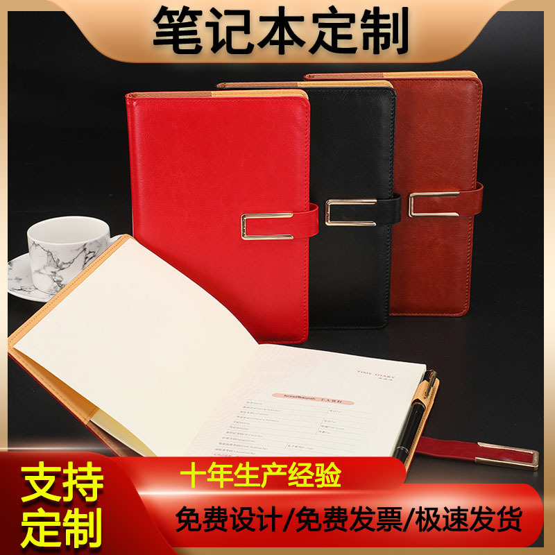創意A5平装金属ボタン手帳セット事務記録本ビジネス手帳はロゴを印刷できます。
