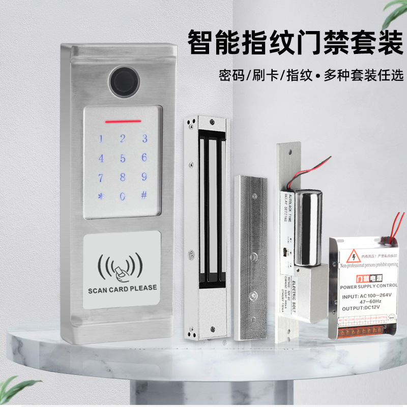 指紋電子入退室システムセットカードパスワードガラスドアロック一体型電磁ロック磁気ロック入退室