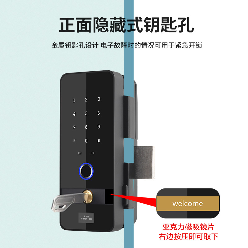 ガラスドア指紋ロック穴なしフレームなしシングル2ドアオフィスパスワードロック電子スマートロックドアロック