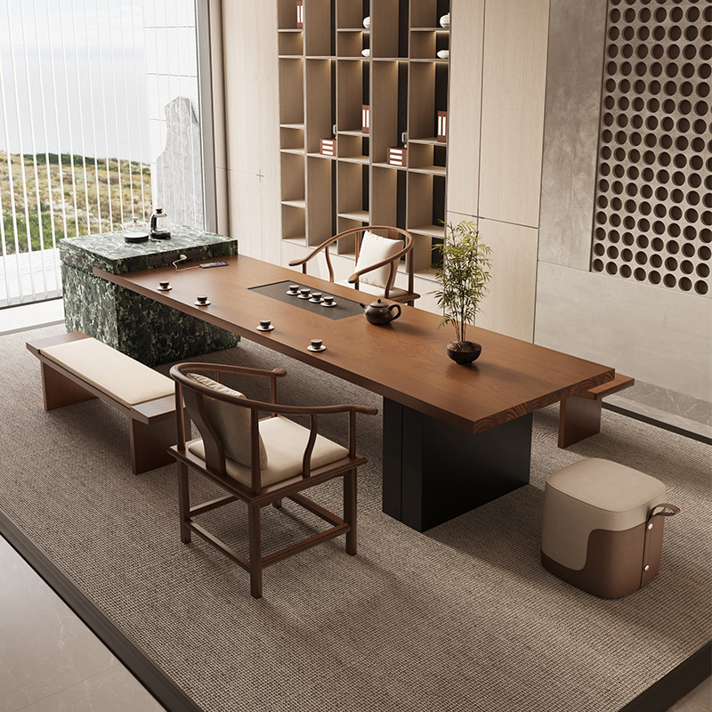イタリア無垢材アイランドティーテーブルと椅子の組み合わせライト高級オフィスティーテーブルハイエンドリビングルームホーム大型ボードティーテーブル