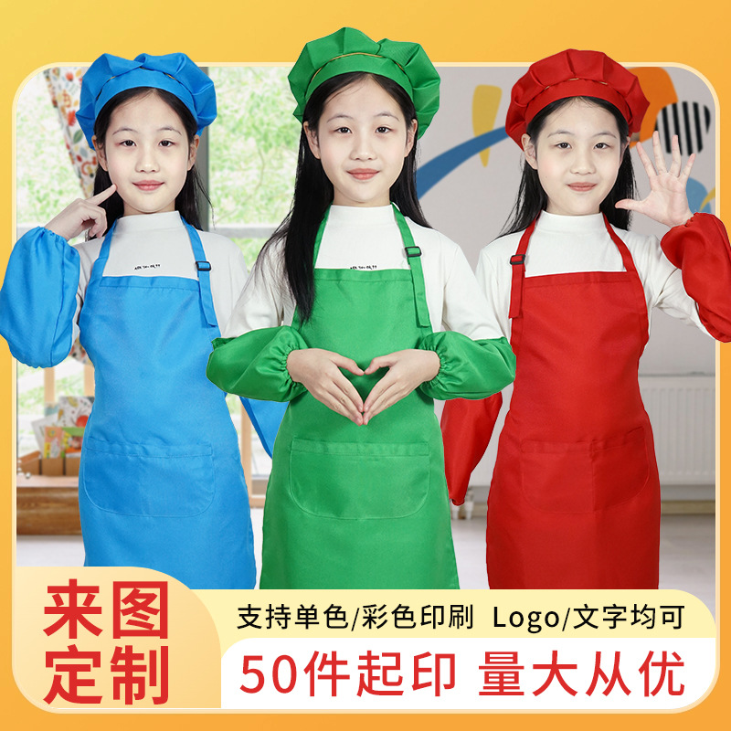 国境を越えた現地販売の子供用エプロン、絵画用不織布カバーオール、ポケットなしエプロン、家庭用美術防水防汚卸売印刷