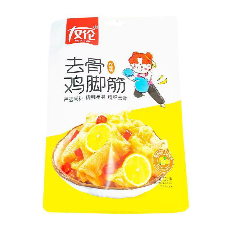 友倫は骨鶏足筋山椒レモン味100gに独立包装網を含みます。
