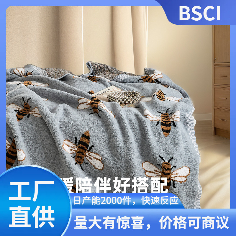 瑞景紡織メーカー卸売り超火の小さなミツバチ毛布a類半端毛ニット毛布ソファー毛布抱枕
