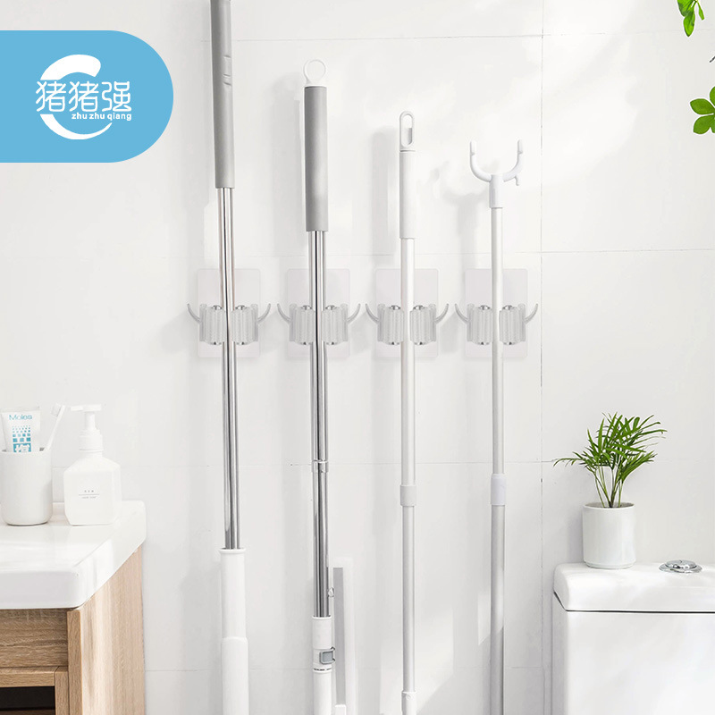 91Nモップホルダー穴なし痕跡なし滑車フック卸売壁掛けトイレ収納ハンガー固定バックル