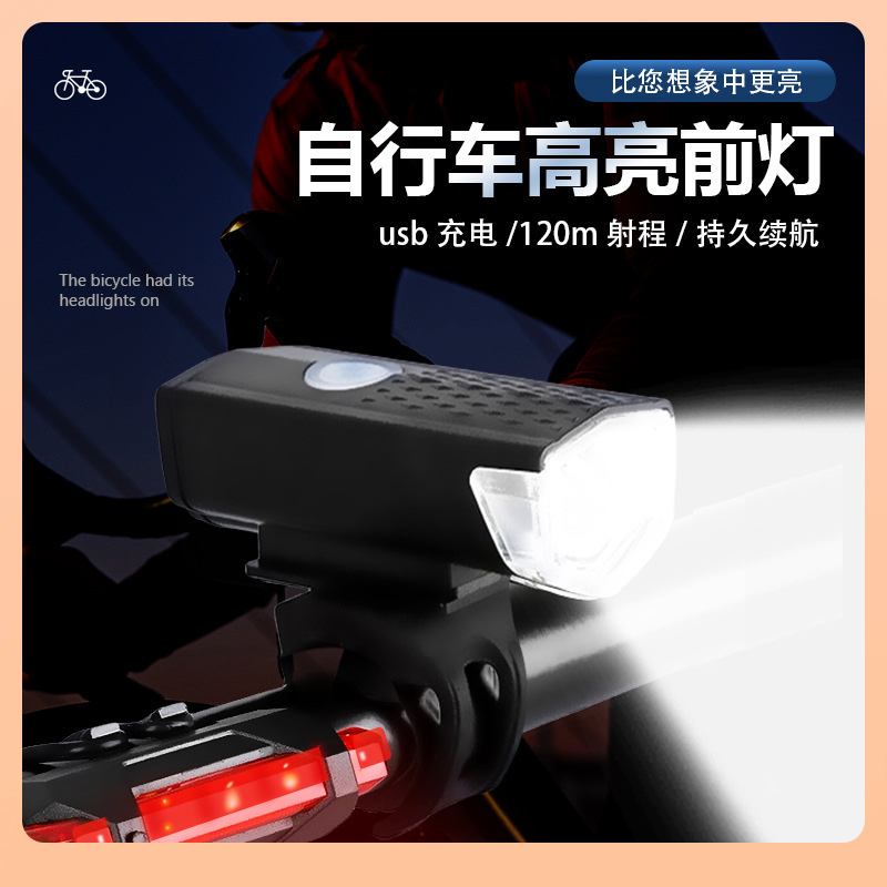 ◓ 自転車フロントライト USB 充電ナイトライディングテール超高輝度ライト警告灯アウトドアサイクリングセットマウンテンバイクフロントとリア