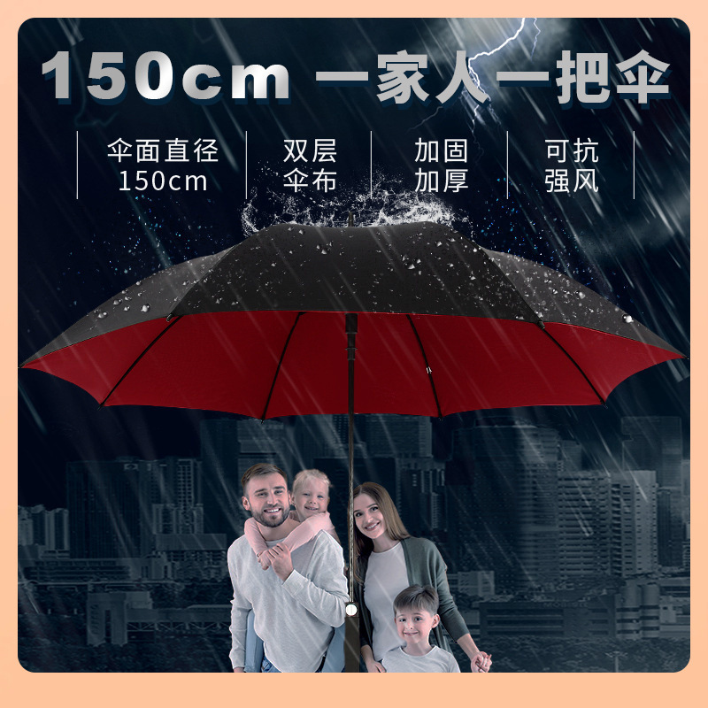 ✅傘自動長柄傘ゴルフ傘抗風男傘傘傘が大きくて厚い三人の豪雨が大きい