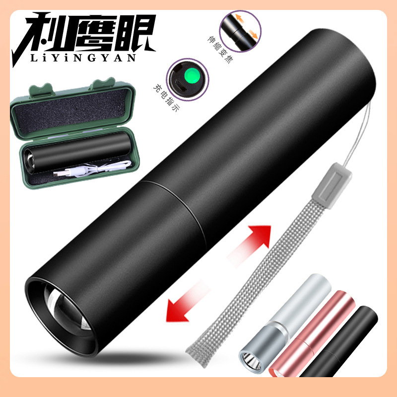✅クロスボーダーled強光懐中電灯充電可能多目的遠射携帯超亮家庭用ミニ携帯側