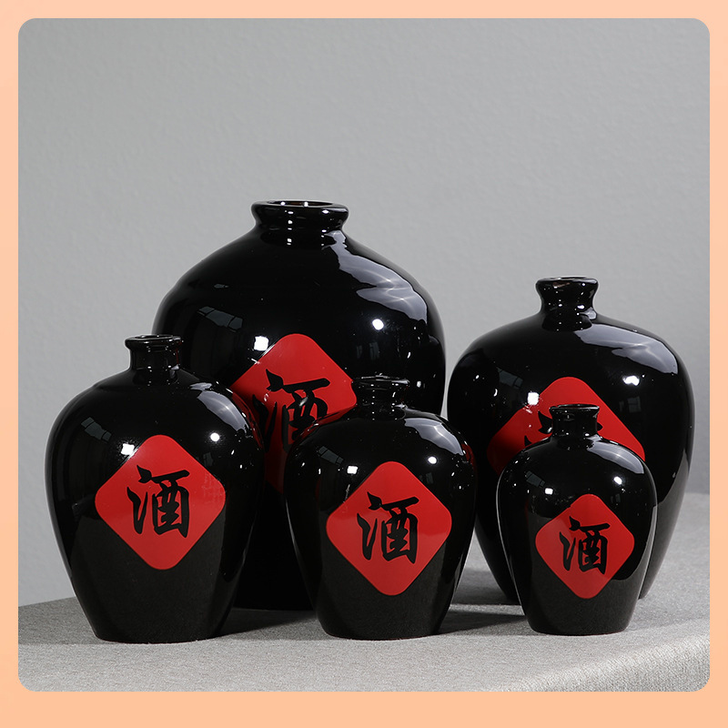 ◓ 陶器黒釉ワインセラミックワイン瓶ワインボトル 1kg 2kg 3kg 5kg 5kg パック家庭用ワインセット密封ボトル