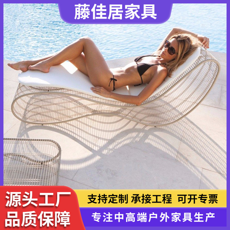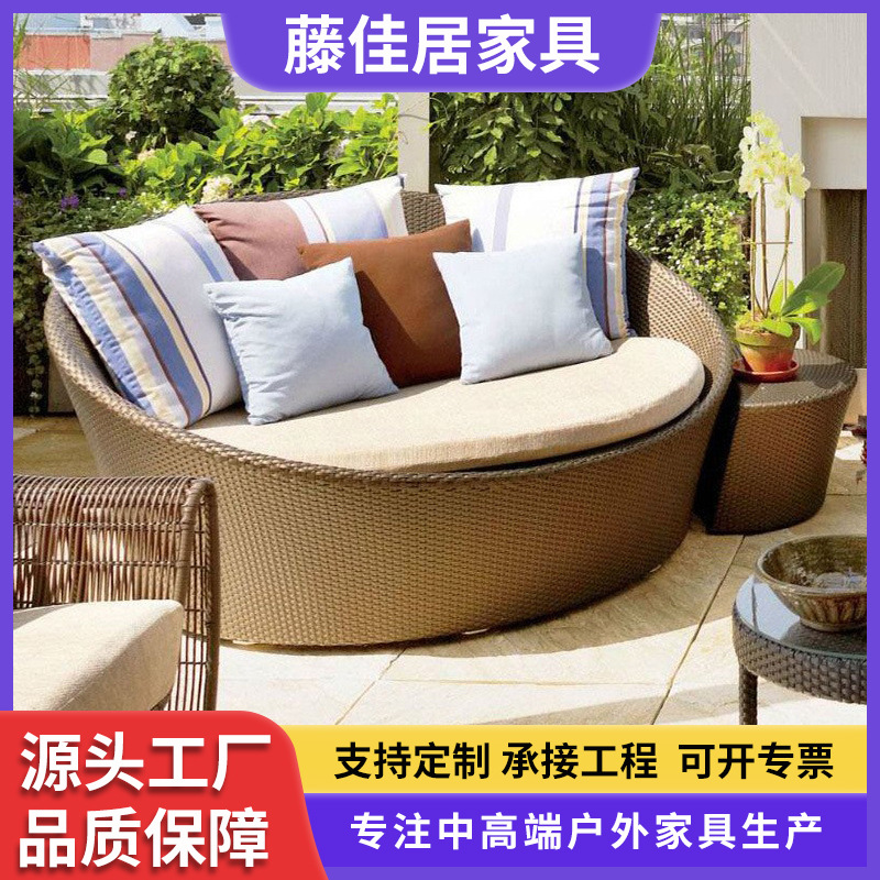屋外ラウンドベッドリゾートレジャーホテルスイミングプール籐バルコニー中庭リクライニングソファ家具カスタマイズ