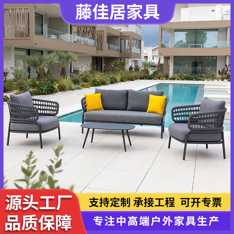 北欧屋外ソファ防水日焼け止めヴィラガーデンバルコニー家具モデルルーム中庭屋外レジャー籐ソファ