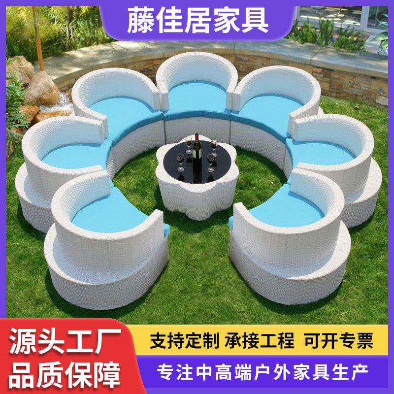 屋外円形籐ソファコンビネーションガーデン庭半円形籐椅子ソファ屋外ホテルアーチ形リビングソファ