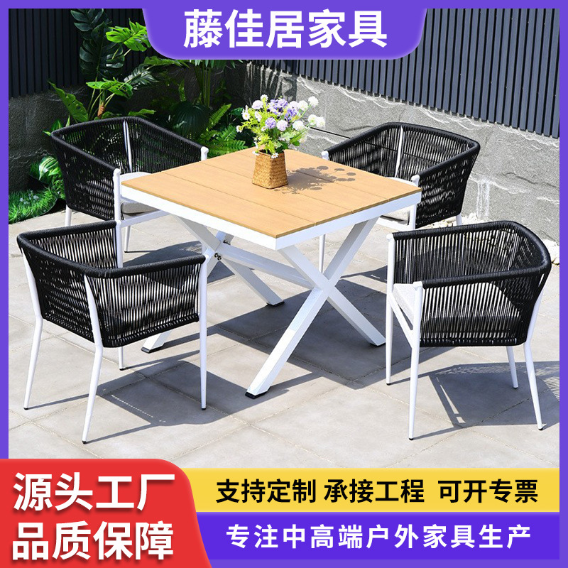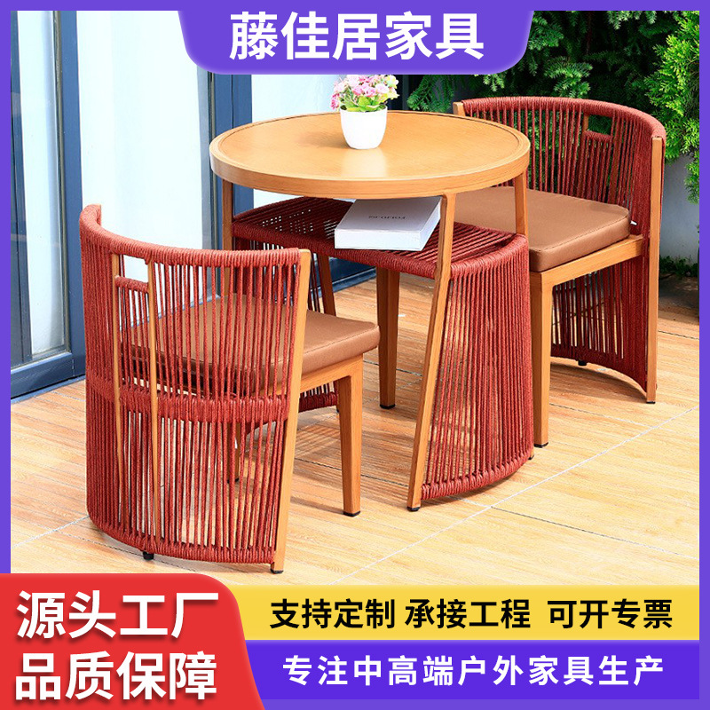 屋外テーブルと椅子の組み合わせバルコニー籐織り商業レストランコーヒーミルクティーショップ交渉家庭用屋外ダイニング籐織りテーブルと椅子