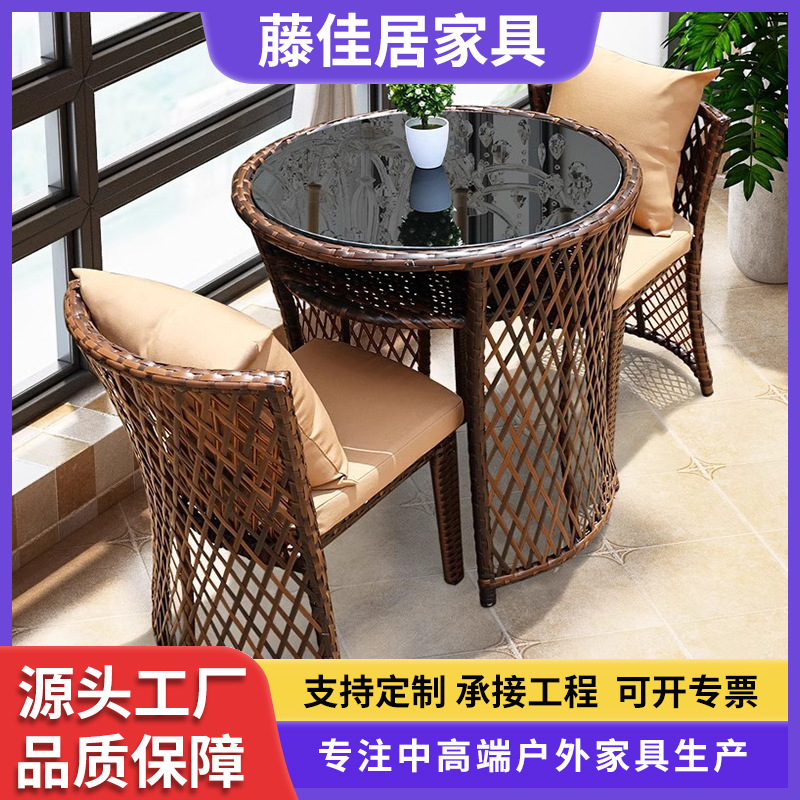 バルコニーのテーブルと椅子は本を読んでカジュアルでシンプルな小戸型茶卓の組み合わせネット赤円形藤椅子の3点セットの家庭用