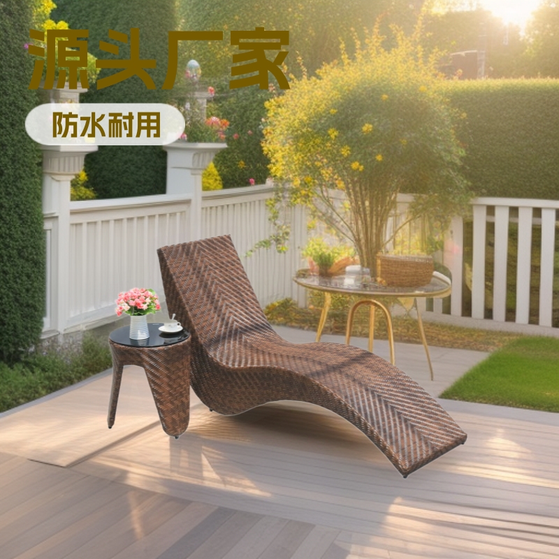 屋外シングルリクライニングチェア屋外中庭ビーチチェアレジャープールプラスチックリクライニングベッド屋外防水クリエイティブ籐椅子