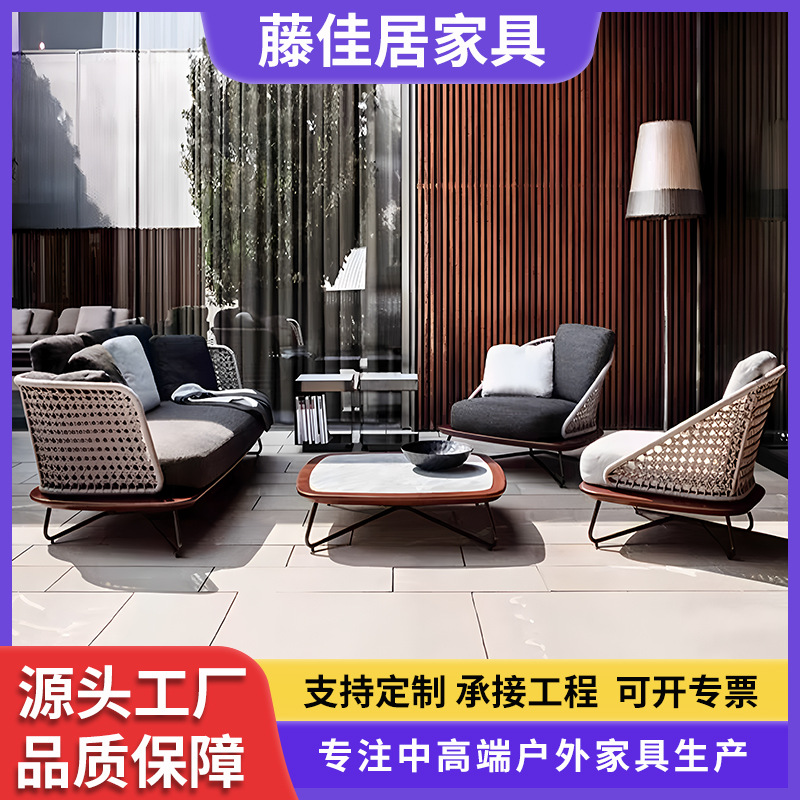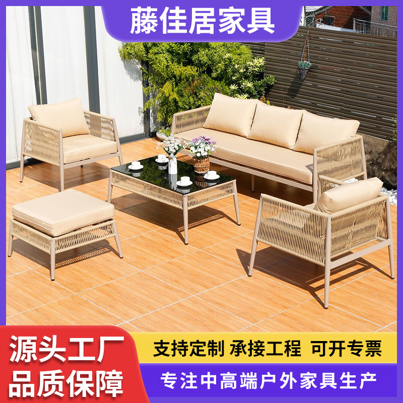 ロープ編みソファシンプルなデザイナー庭園屋外ガーデンテラス家具櫛化レジャー北欧屋外ソファ