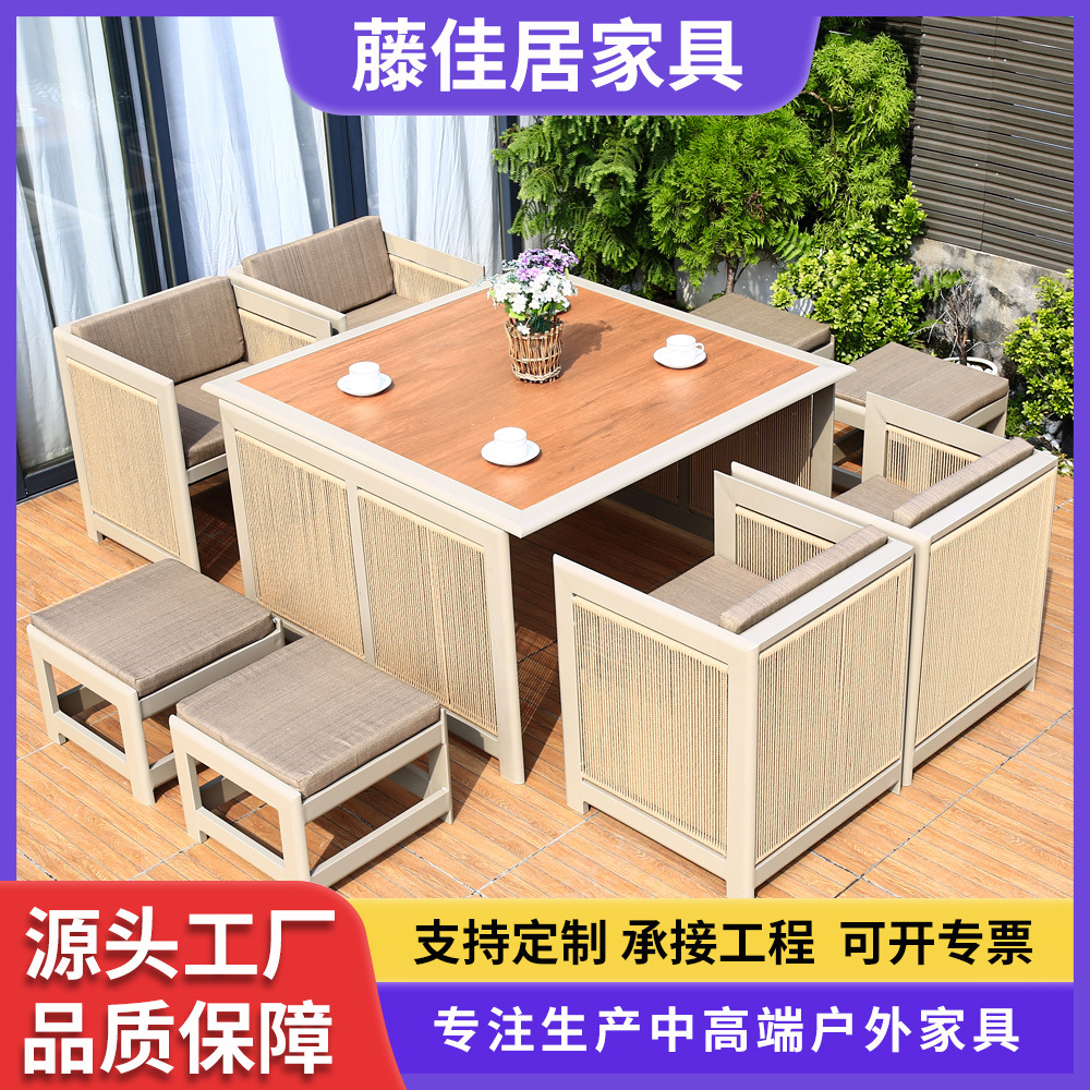 屋外テーブルと椅子籐椅子プラスチック木製組み合わせ屋外バルコニーヴィラ中庭レジャーソファテラスガーデン籐家具