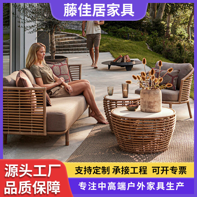 アウトドア北欧籐編みソファ屋外露天ガーデン庭園防水日焼け止めレジャー籐椅子民宿露店セット