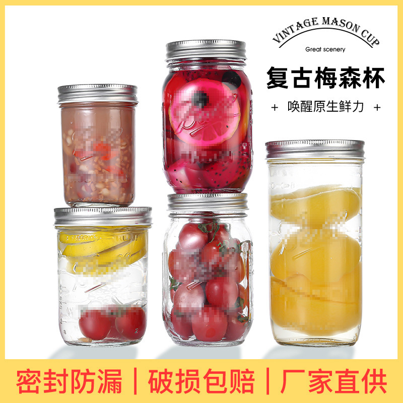 メイセン缶ガラス瓶大容量透明シールinsミルクシェイクサラダ缶分注瓶オート麦朝食カップ卸売り