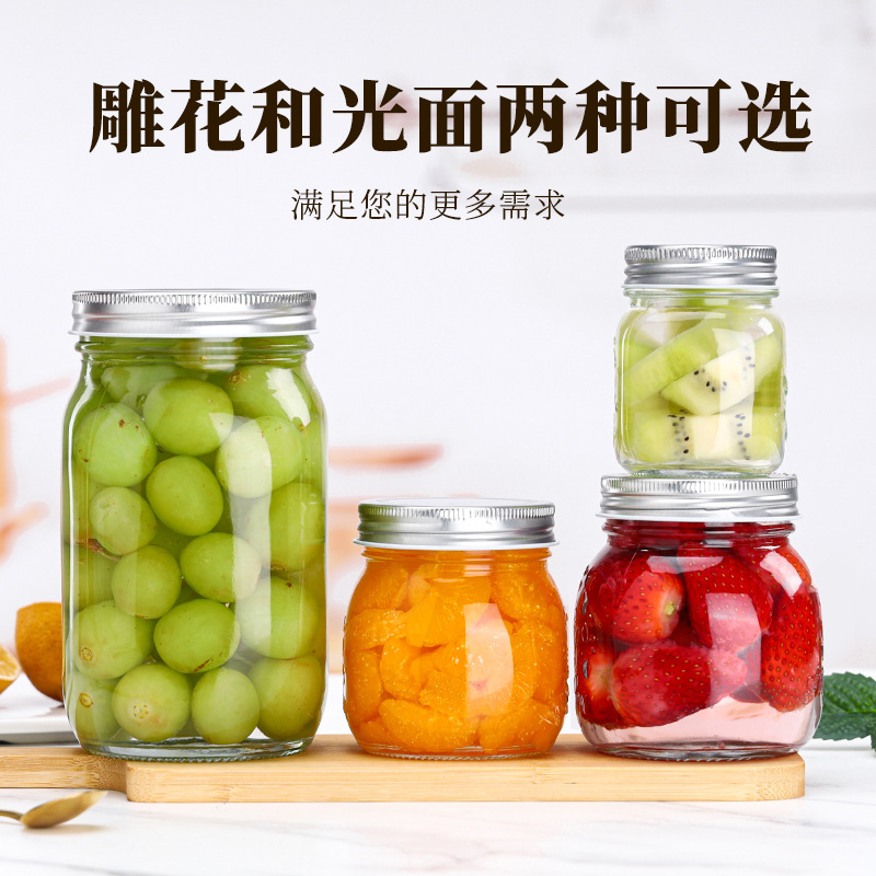 彫刻収納瓶ガラスジャム蜂蜜瓶食品収納メイソン缶家庭用蓋付き密封缶卸売り