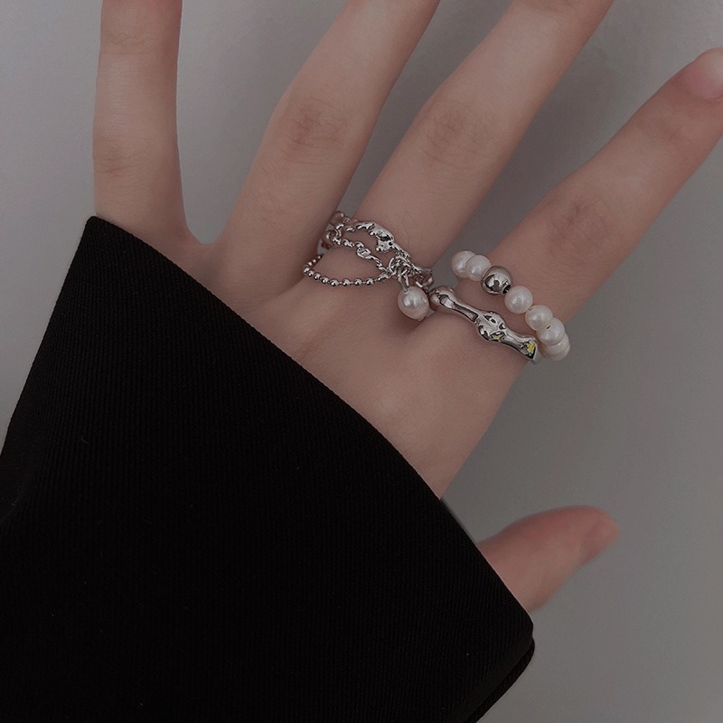 超仙二重真珠の指輪の女性の気質は優雅で優しいチェーンのフリンジの口の指環の指の指輪です。