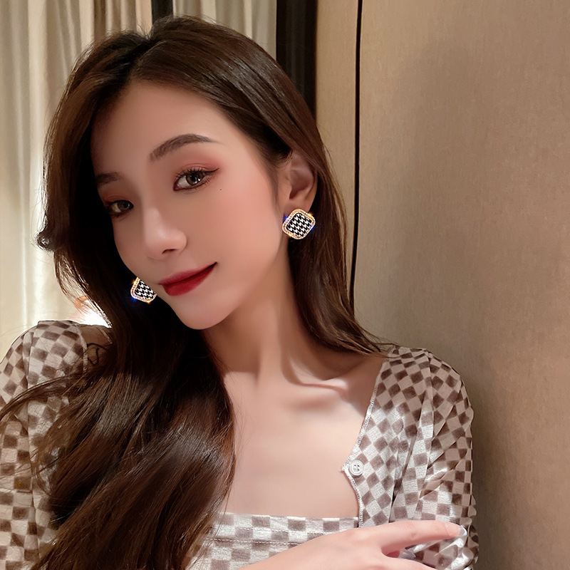 錦航レトロ格子イヤリング女性大衆デザイン感高級ピアス2022年新作潮925銀針ピアス