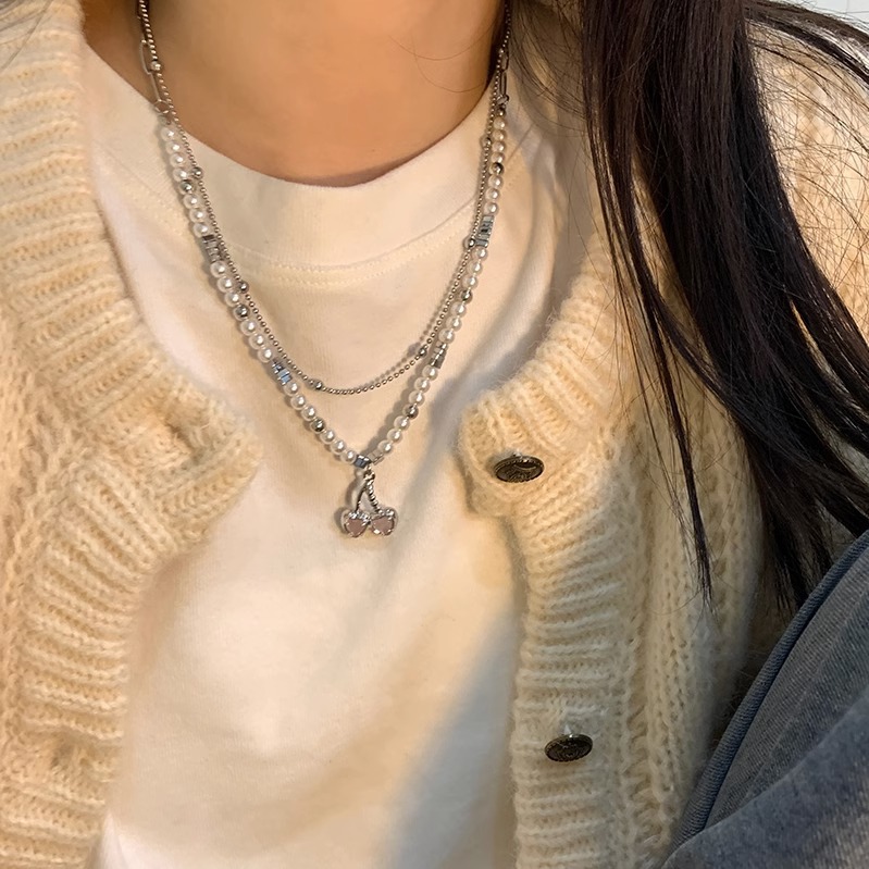 2025年新作 パウダーパール ダブルレイヤーネックレス レディース ライトラグジュアリー ニッチ 欧米風 個性派アクセサリー 甘くてクールな鎖骨チェーン