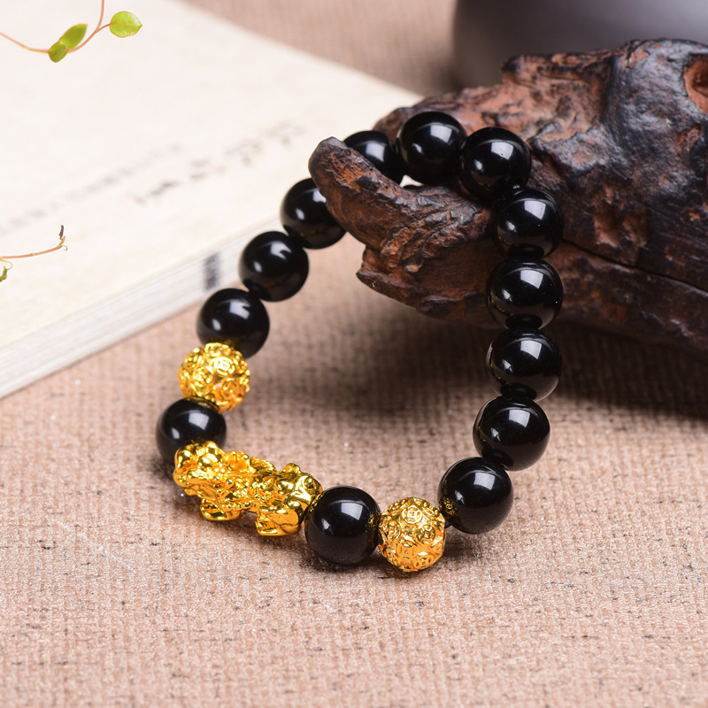 貔貅ブレスレット模造黒曜石サンドゴールド6文字マントラブレスレットエスニックスタイル男性と女性のための富を引き寄せるピッコライブストリーミングモデル