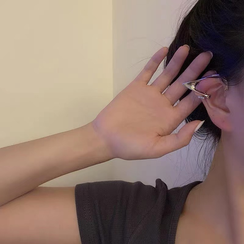 デザイン感レトロな香港風耳クリップ無耳洞女性高級感小衆銀色の爆金耳飾り冷たい風耳骨クリップ