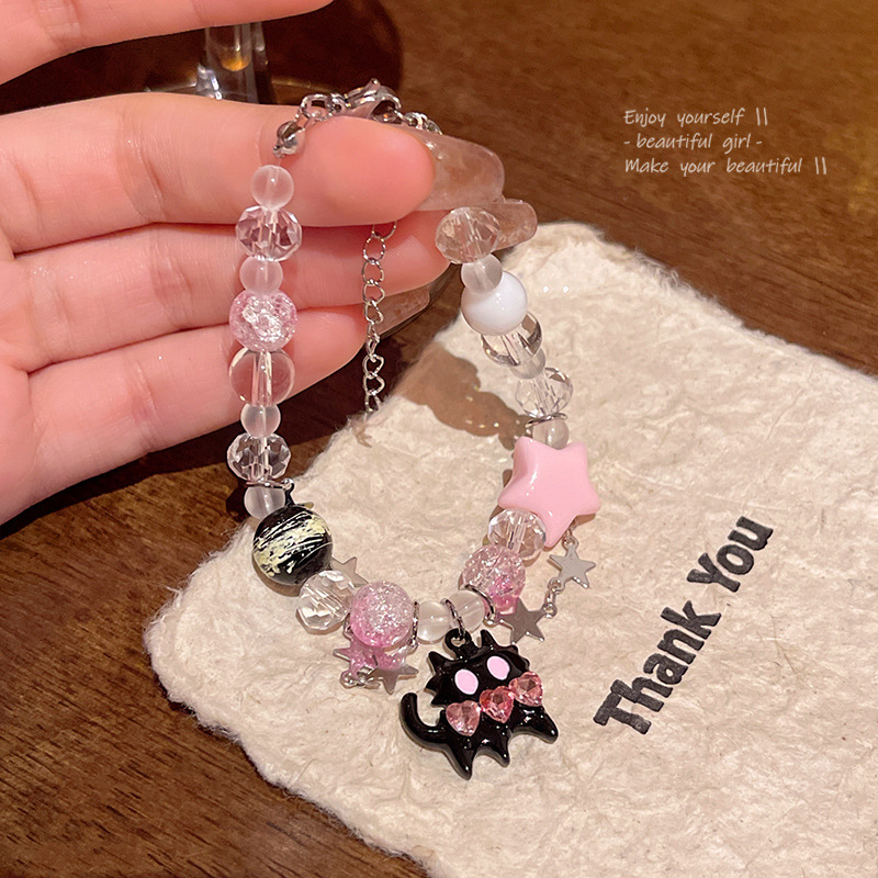 カラフルな氷透明面白い猫ブレスレット女性のためのライト高級ハイエンド五芒星二層ブレスレットインニッチデザイン