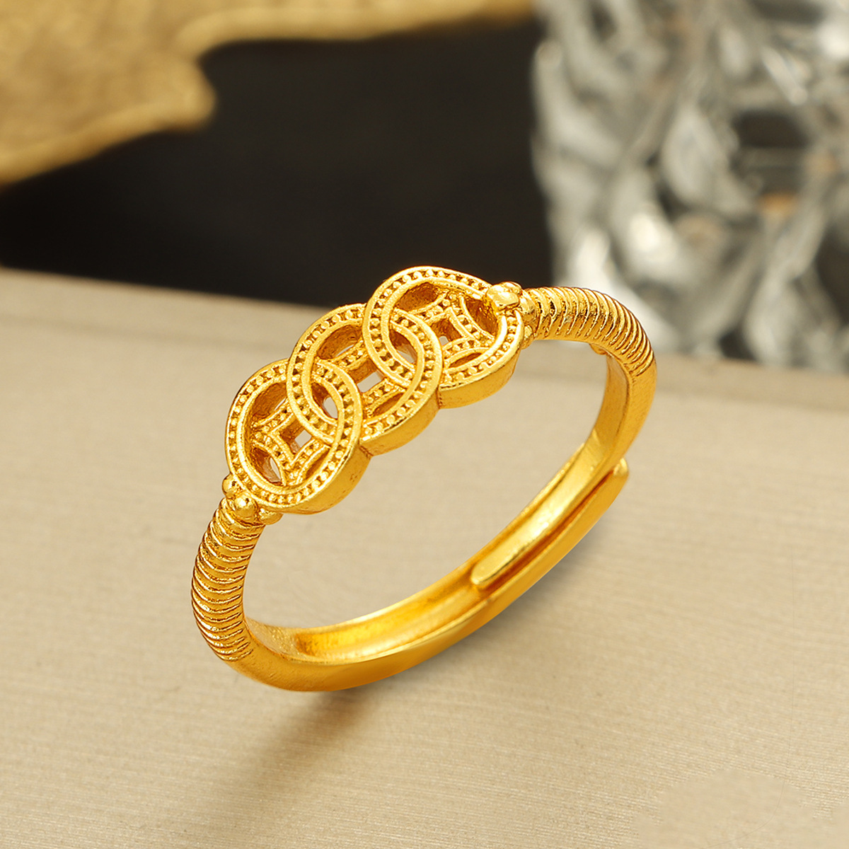 新しい国民トレンド古代サンドゴールドリングレトロデザイン銅貨リング女性の宮殿スタイルのジュエリー