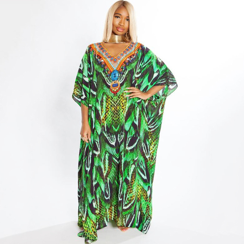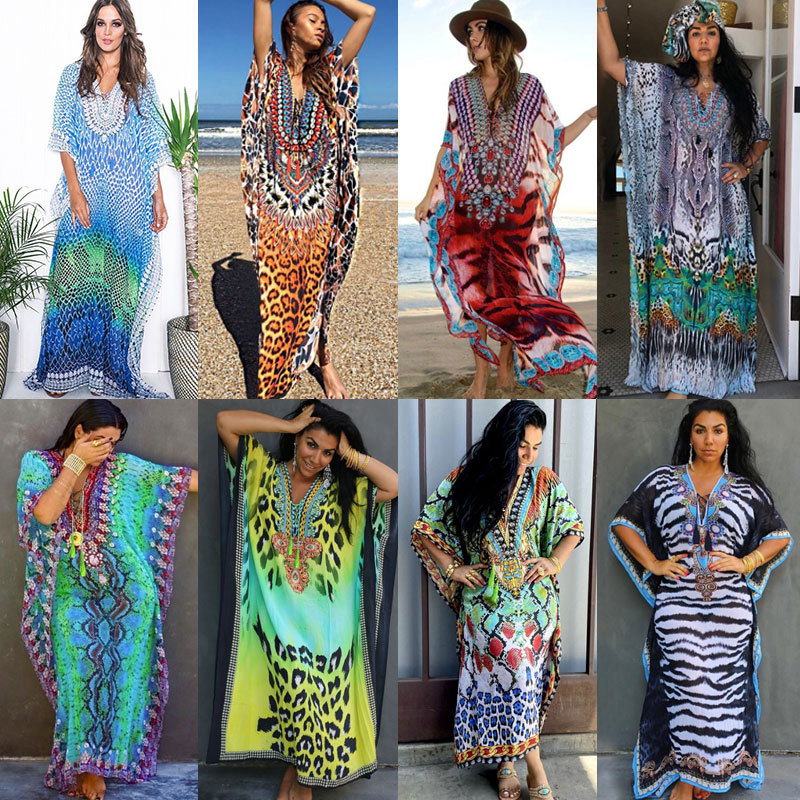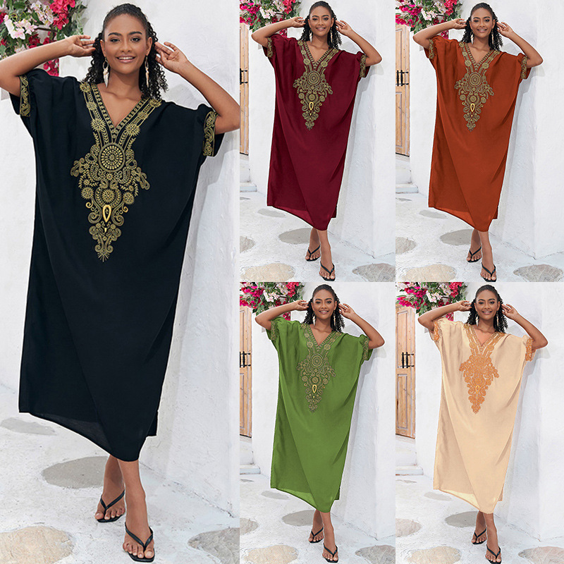国境を越えた欧米人の綿のプリントのゆったりした大きいサイズの長い服の休暇のワンピースの女性のビーチのコートのビキニのブラウス