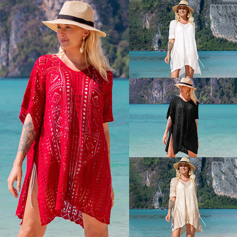 新型ベスト式ニットサスペンダースカート透かし彫りセクシーなビーチ日焼け止め服リゾートビキニブラウス水着の外付け