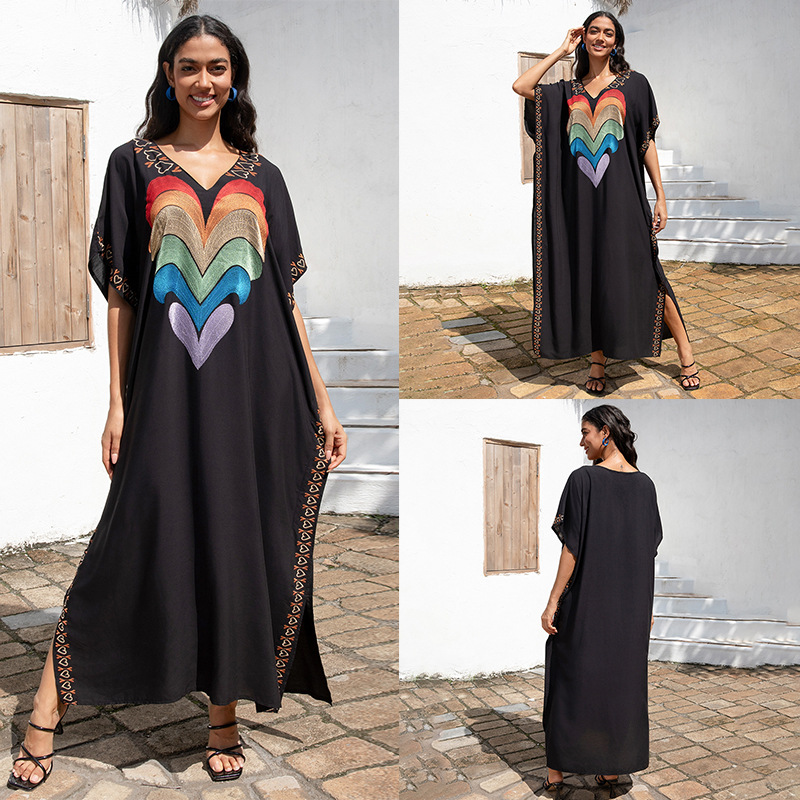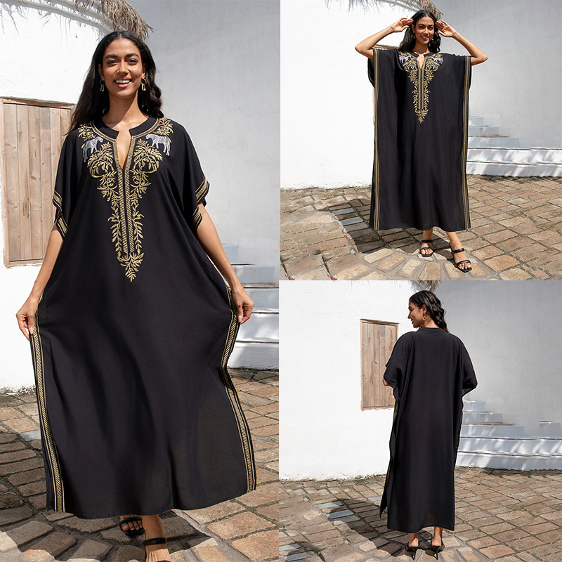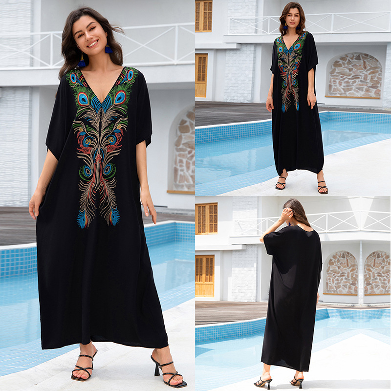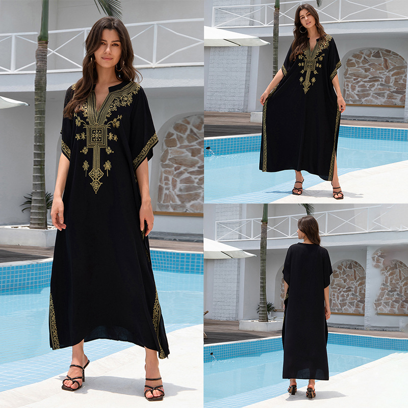 欧米人綿刺繍リゾートゆったり大きいサイズロングスカートビーチコートワンピースビキニブラウス日焼け止め女性