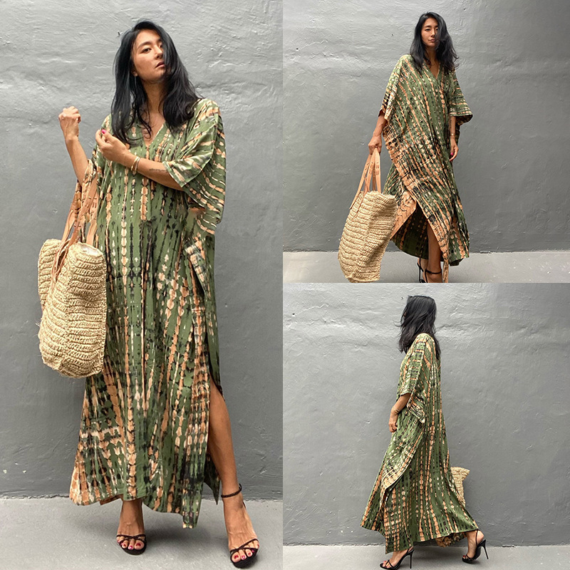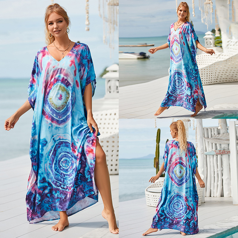 新型欧米人綿染めビーチワンピースゆったり長衣ビキニ水着外着ブラウス日焼け止めシャツ