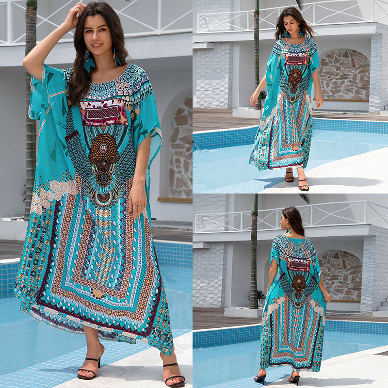 国境を越えた新しい綿プリントビーチワンピース女性のゆるいローブビキニ水着の外にブラウスの日焼け止めシャツがついている