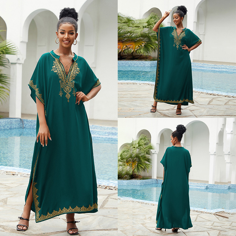 国境を越えた欧米人綿刺繍ビーチワンピースゆるい長衣刺繍ビキニ水着外着ブラウス日焼け止め