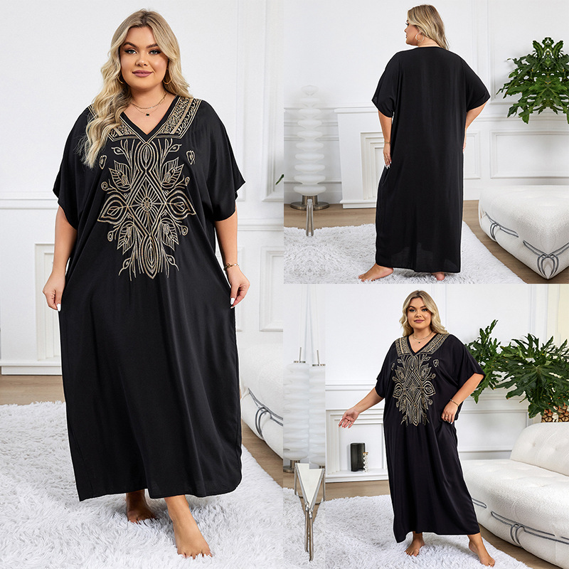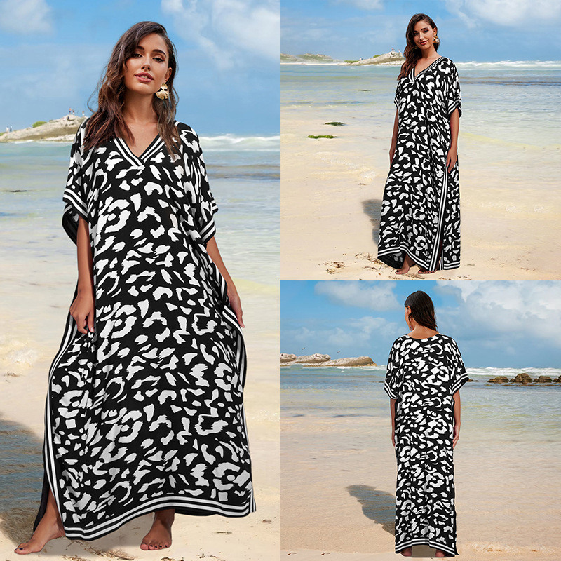 国境を越えた欧米の綿のプリントの休暇のゆったりした大きいサイズのロングスカートのビーチのコートのワンピースのビキニの外はブラウスを掛けます。