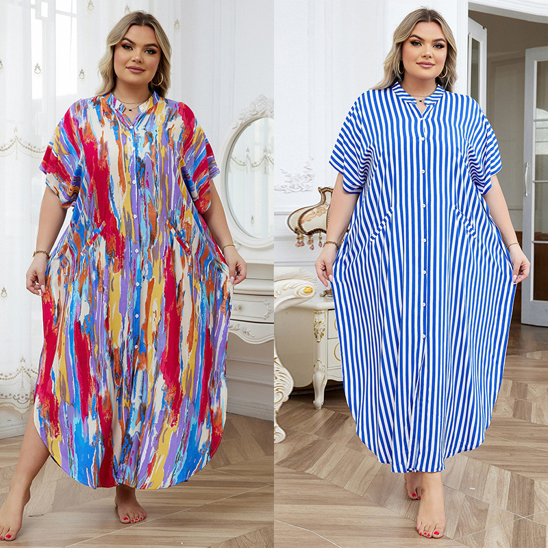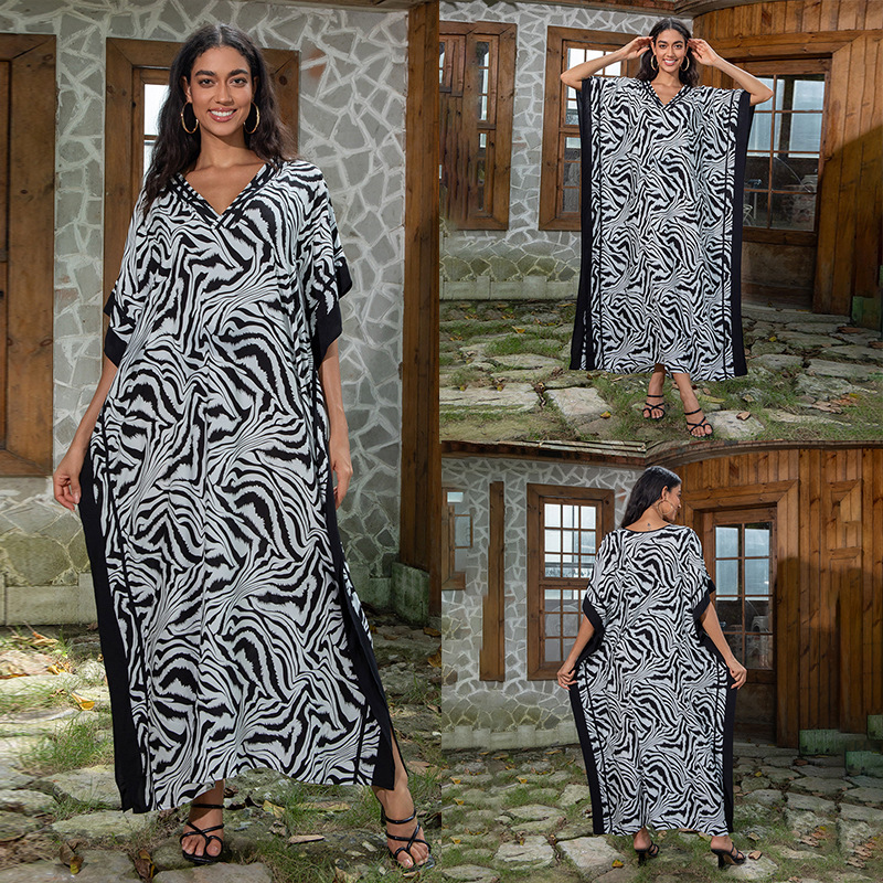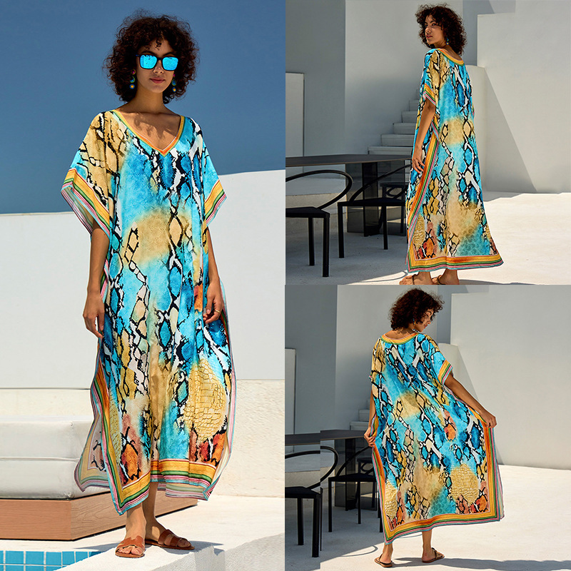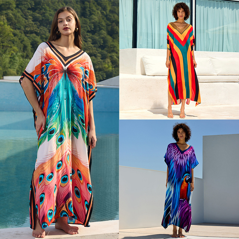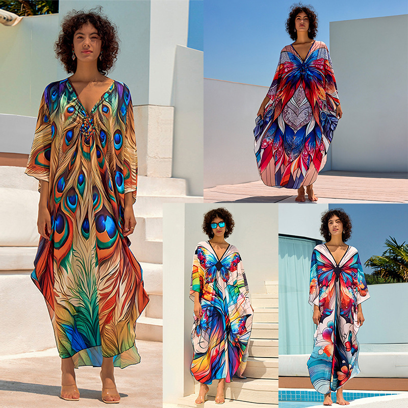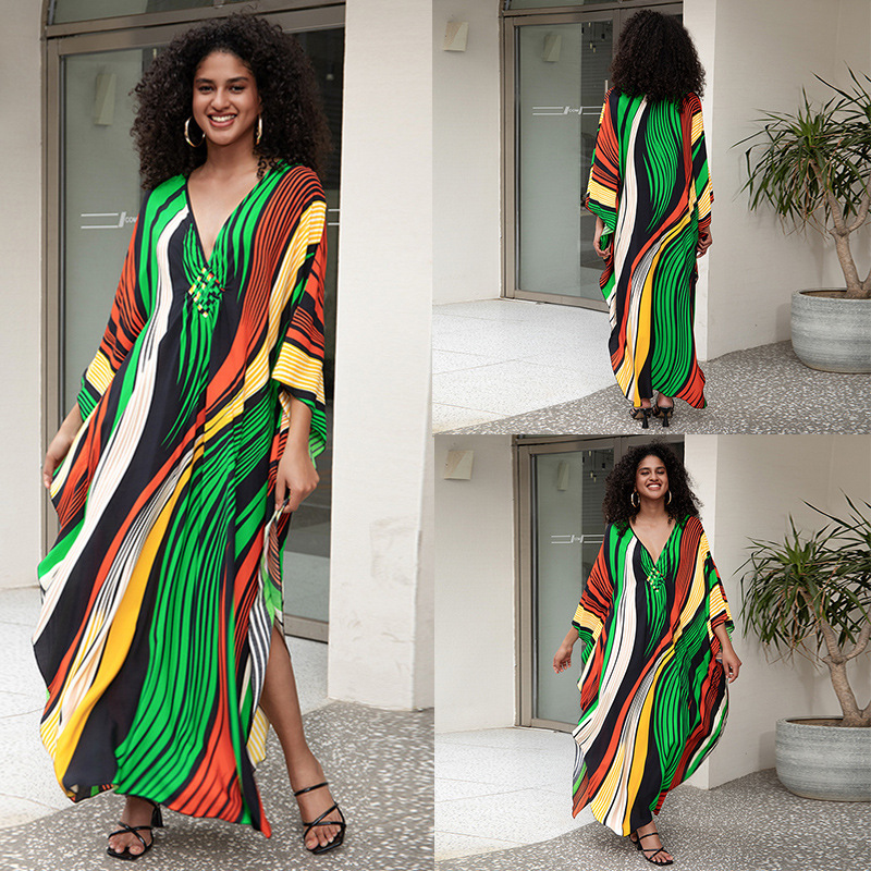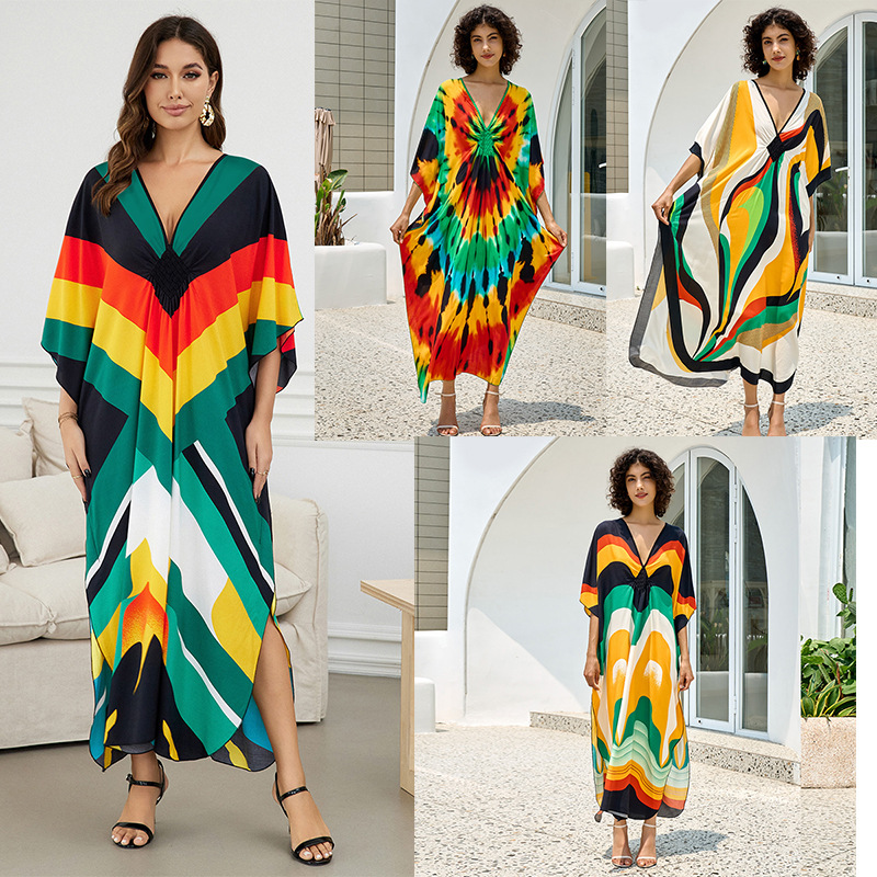 欧米の新型の綿のプリントの長い服の女性の休暇のゆったりしている大きいサイズのワンピースのビーチのブラウスのビキニの日焼け止めの服