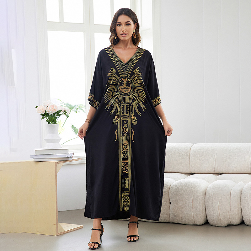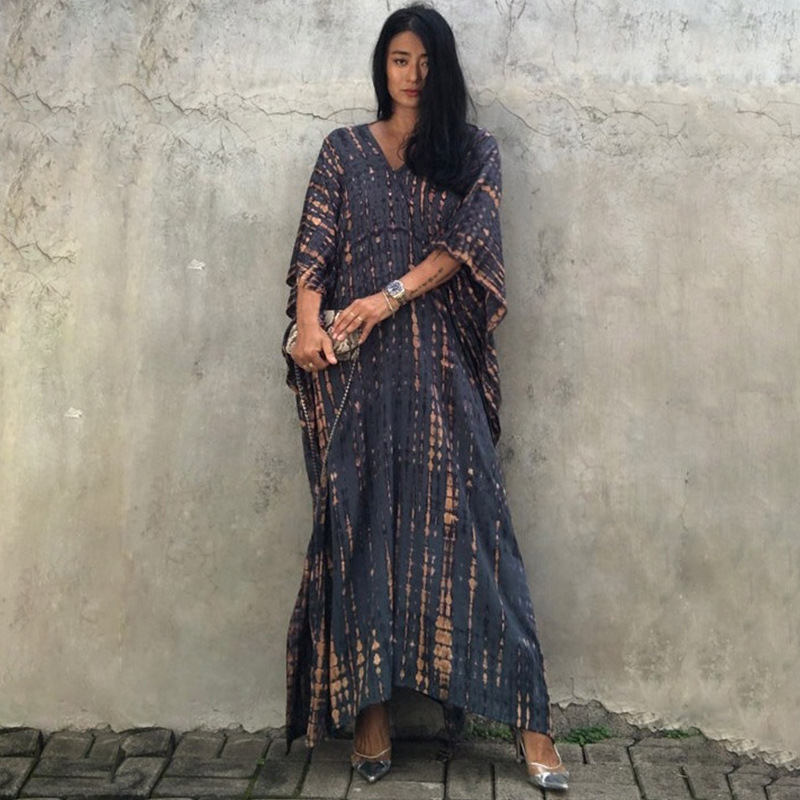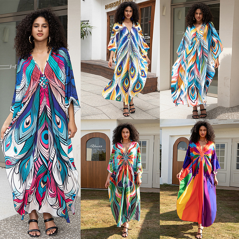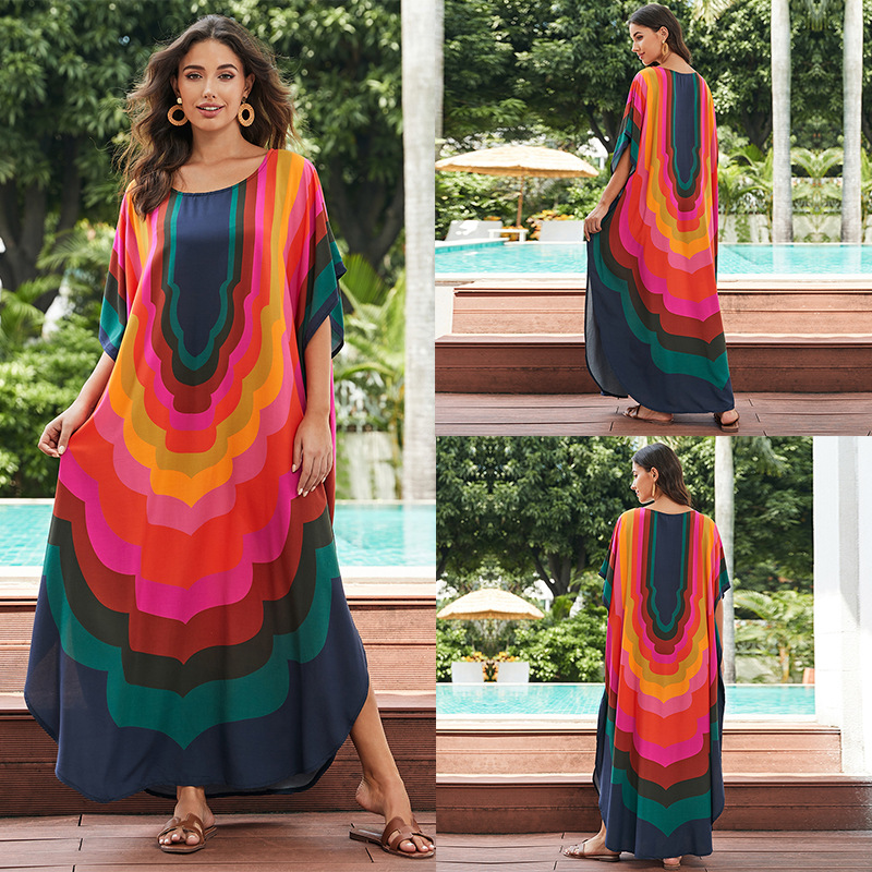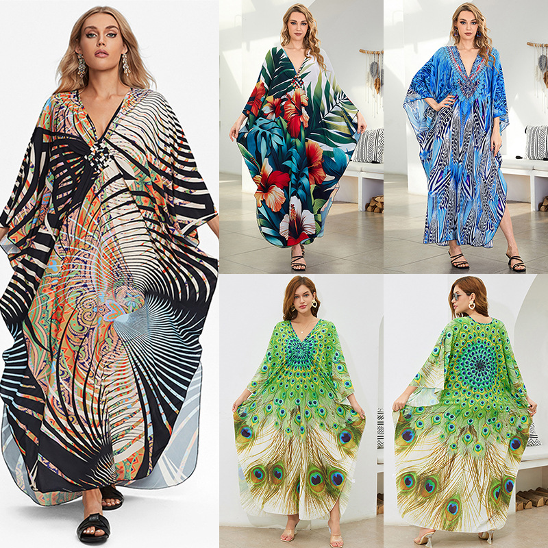 国境を越えた欧米の綿のプリントの休暇のゆったりした大きいサイズのロングスカートのビーチのコートのワンピースのビキニの外はブラウスを掛けます。