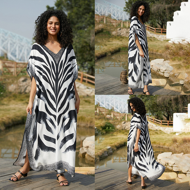 国境を越えた欧米のポリエステルプリントビーチブラウスとロングスカートのゆるい長衣ビキニ水着の外に日焼け止めシャツがついている