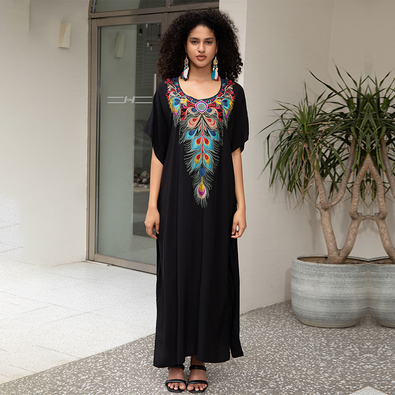 国境を越えた欧米人綿刺繍休暇ゆったりとした大きいサイズの長衣ビーチコート