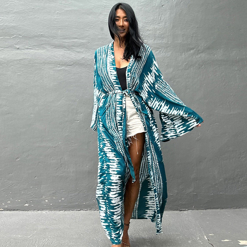 国境を越えた欧米人綿プリントのゆるい日焼け止めカーディガン女性ビーチコート休暇ビキニ外着水着ブラウス